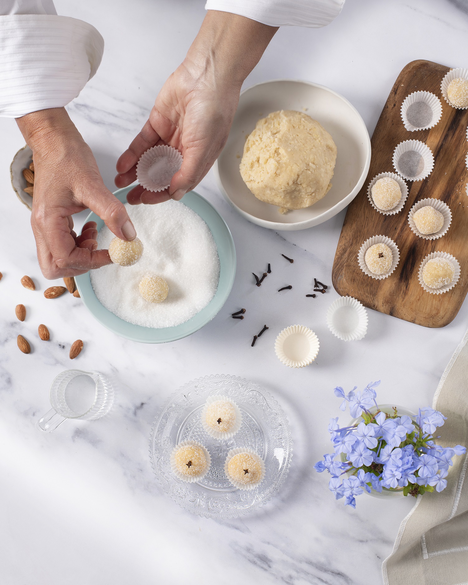 Φτιάχνουμε ωμά και πανεύκολα κυπριακά αμυγδαλωτά. Μια νοστιμιά που ετοιμάζεται στη στιγμή, χωρίς ψήσιμο, με μόνο τρία υλικά - αμύγδαλα, ζάχαρη άχνη και ροδόσταγμα.