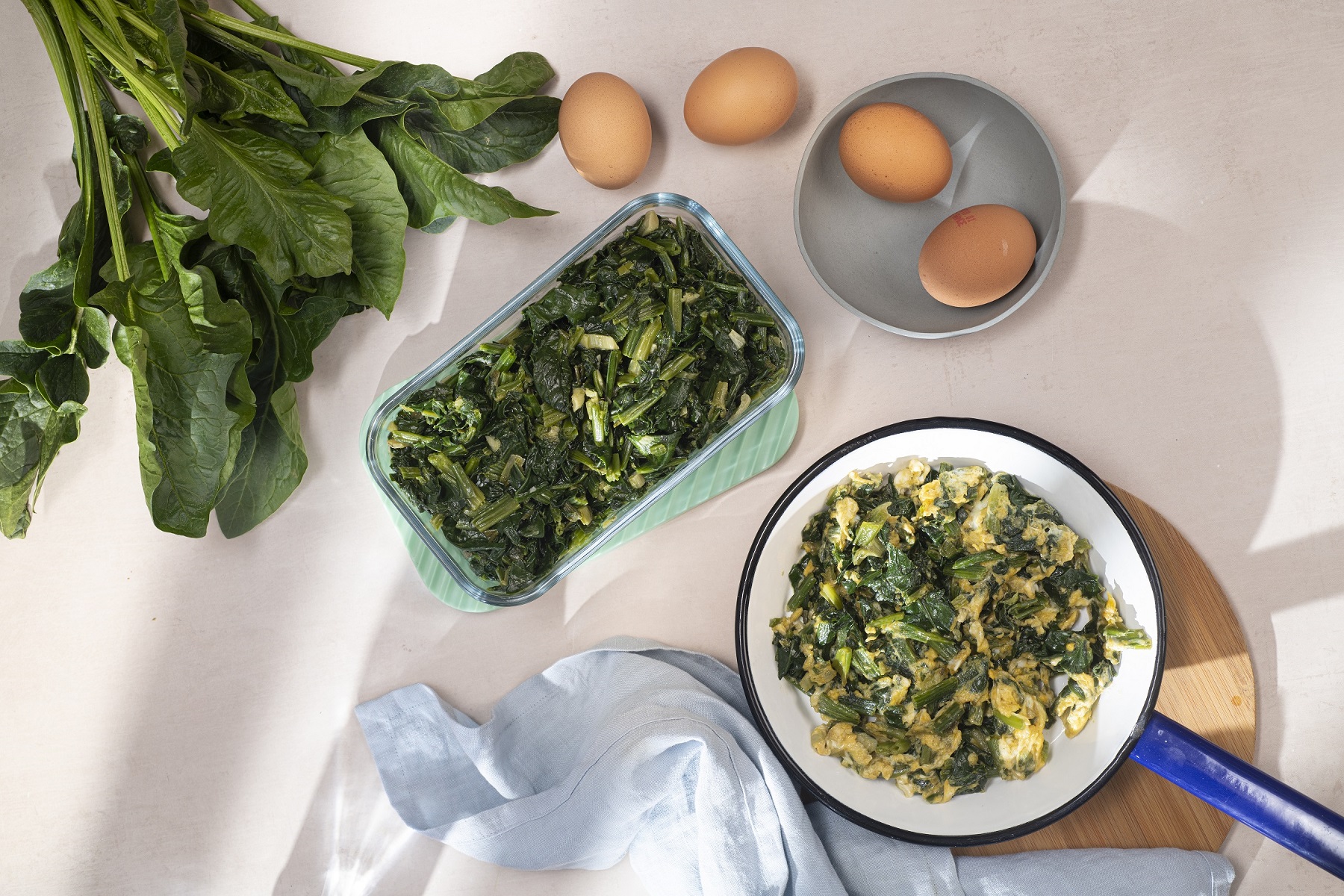 Το σπανάκι είναι ένα ακόμη υλικό που χρειάζεται γρήγορη αξιοποίηση. Αν ετοιμαστεί από νωρίς με λίγο ελαιόλαδο και φρέσκο κρεμμυδάκι, μπορεί να χρησιμοποιηθεί σε ομελέτα φούρνου, σε ζυμαρικά ή σε wraps με χούμους, στραγγιστό γιαούρτι ή cream cheese. Έτσι, αποφεύγουμε να αγοράζουμε κάθε μέρα νέα συνοδευτικά και αξιοποιούμε μια βάση με πολλούς τρόπους.