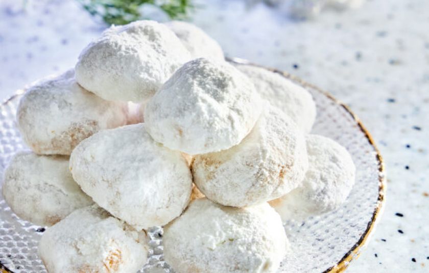 - Ρίχνουμε την άχνη μέσα σε ένα μεγάλο μπολ και ρίχνουμε μέσα τους κουραμπιέδες λίγους λίγους, τυλίγοντάς τους μέσα στην άχνη.