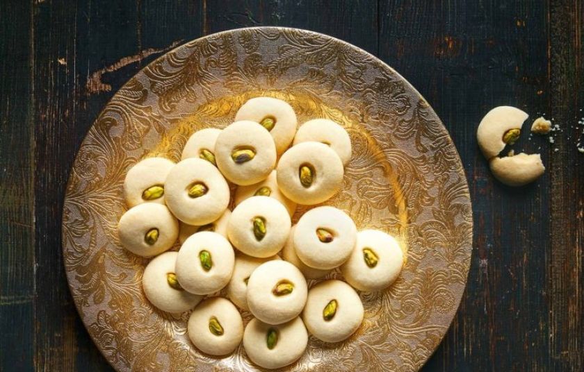 - Στο τέλος, μπορούμε να τοποθετήσουμε στο κέντρο κάθε μπισκότου ένα φυστίκι, αν θέλουμε.