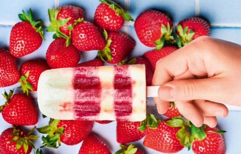 Αποθήκευση για αργότεραΜε τρία μόνο υλικά φτιάχνουμε εντυπωσιακό παγωτό ξυλάκι, ριγωτό, με στρώσεις γιαουρτιού και φράουλας.