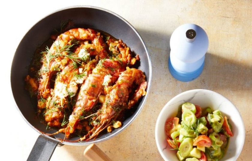 Οι γαρίδες σαγανάκι μπαίνουν σε μαρινάδα με ούζο και μέλι, αποκτούν πιο στρογγυλή γεύση και δένουν με τη φέτα και τις πιπεριές κέρατο. Ένα κλασικό πιάτο με μια ανανεωμένη ματιά.